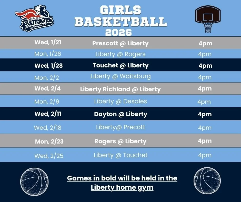Girls basketball is open to grades 5-8. The season runs from January through February.